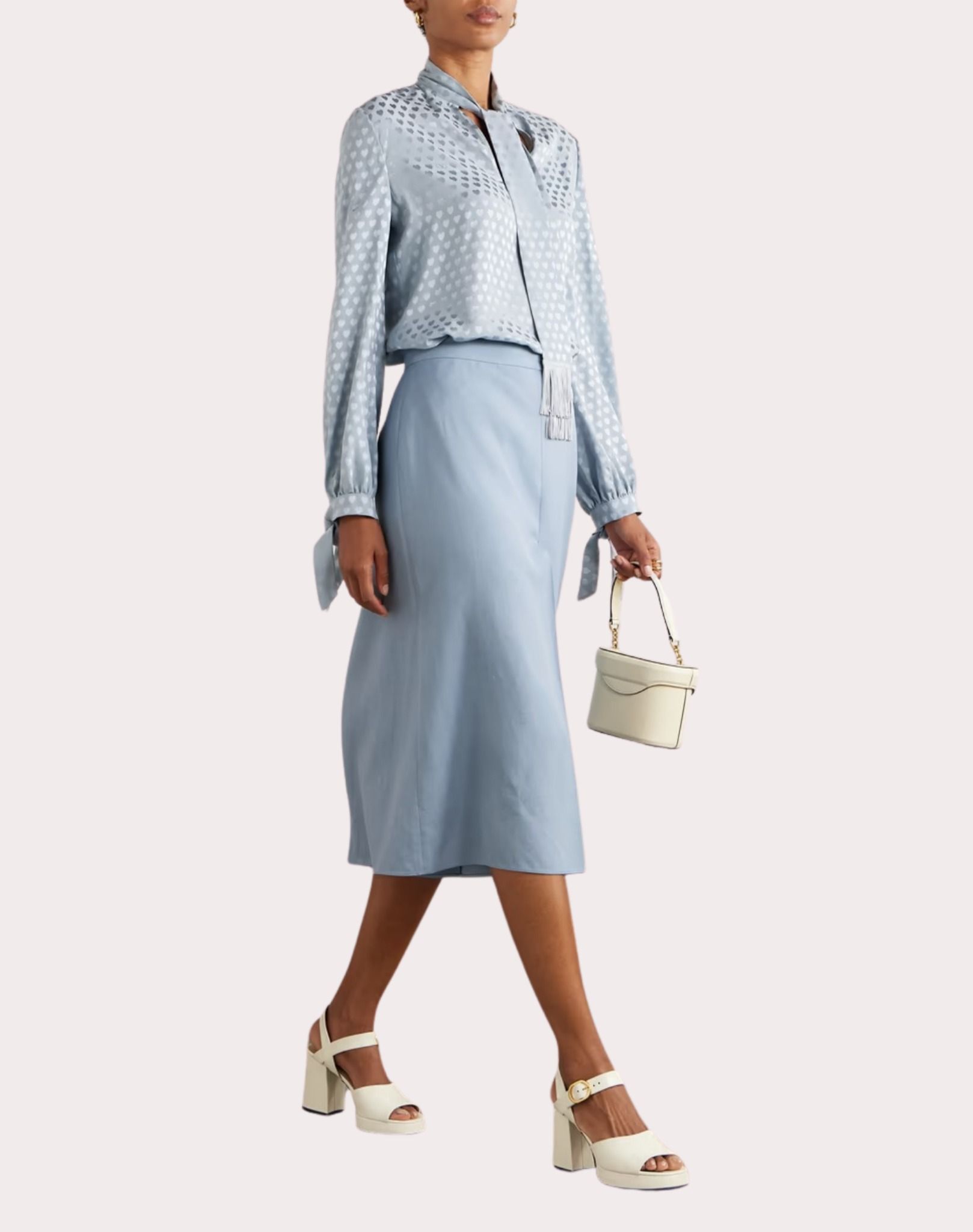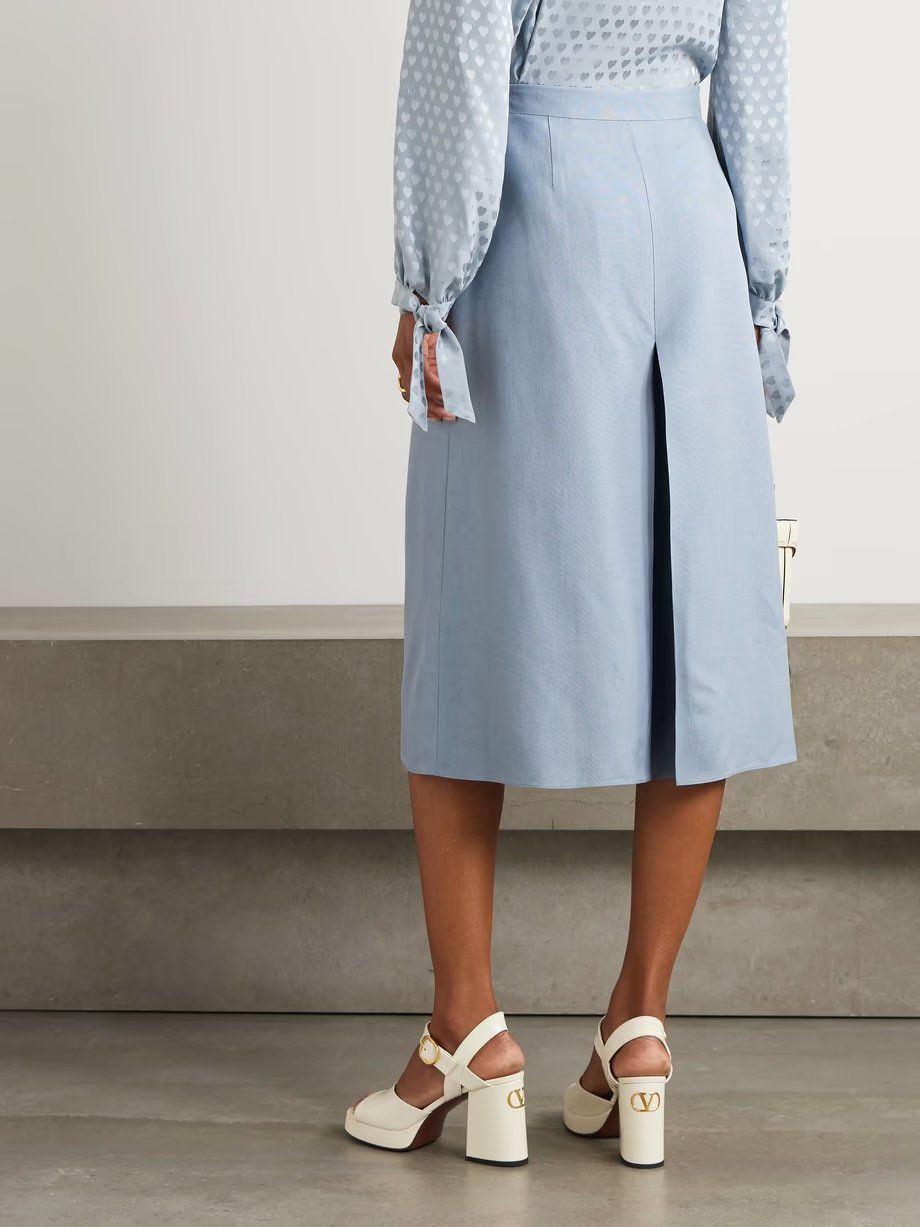 Quần lửng nữ giả châ váy màu xanh ghi, kéo khóa cạnh