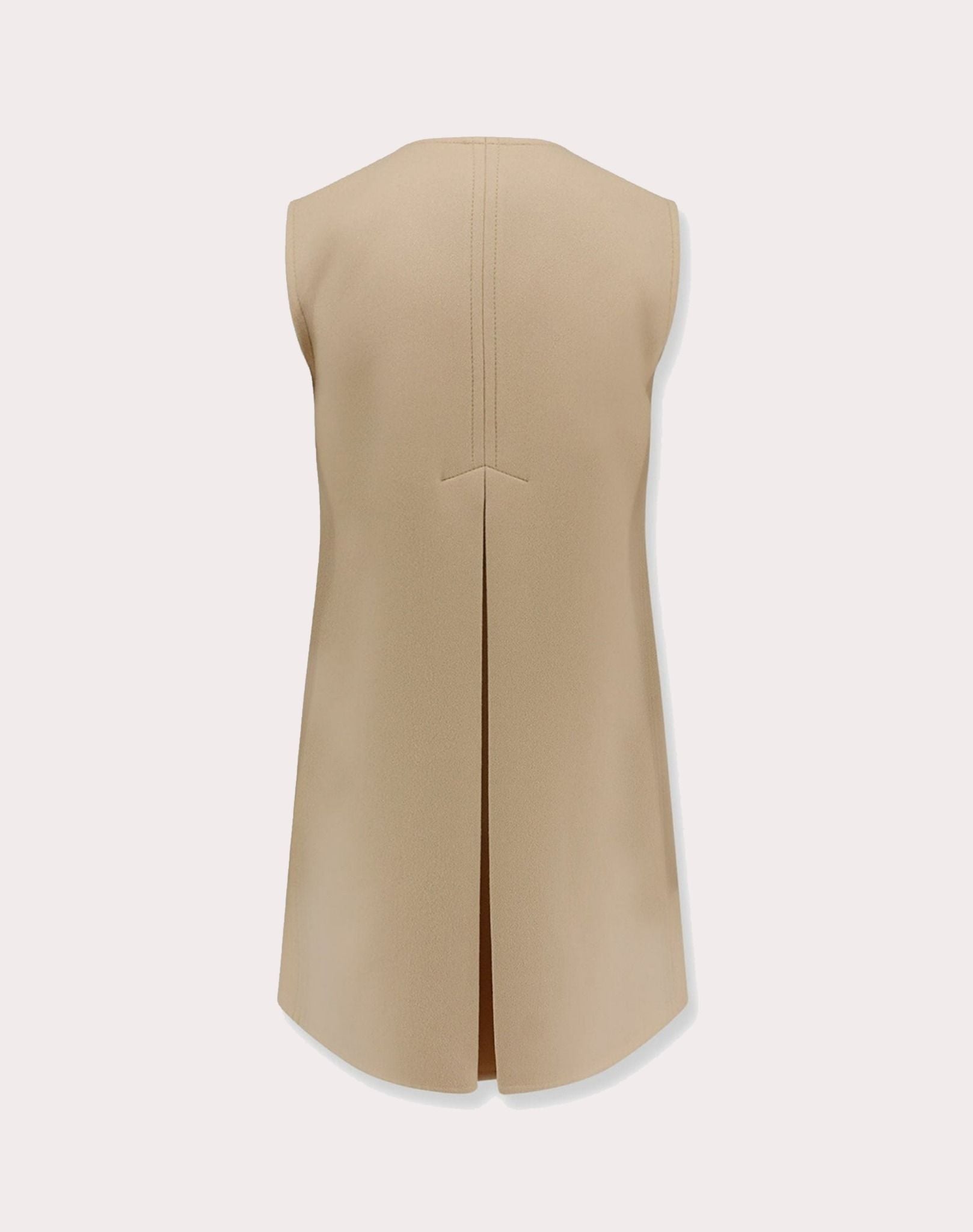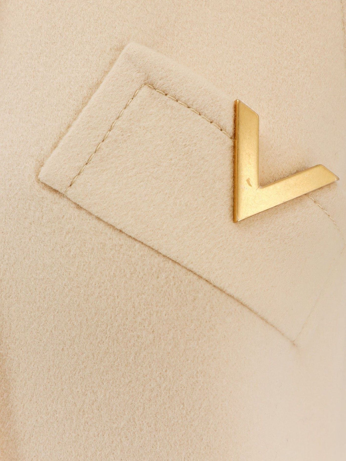 ÁO KHOÁC DẠ SÁT NÁCH DÁNG DÀI MẦU KEM VÀNG , CỒ TRÒN CÀI KHUY TRƯỚC CÚC TO CÙNG MẦU , CÓ 4 TÚI TRANG TRÍ CHỮ V VÀNG KIM LOẠI