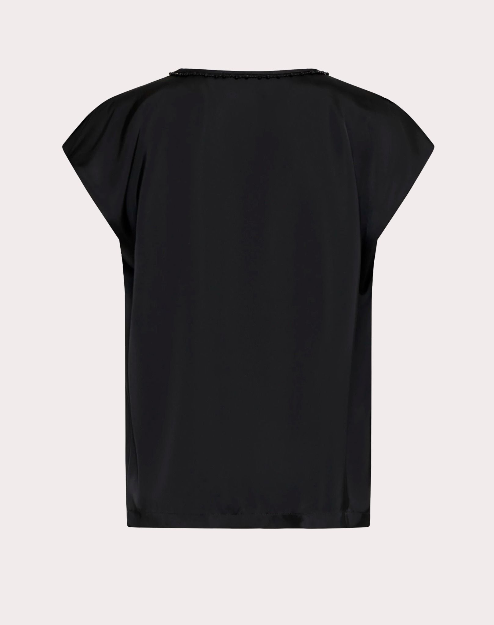 Áo nữ sát nách cổ tròn màu vàng,cổ pha ren đính dải hạt nhựa cùng màu