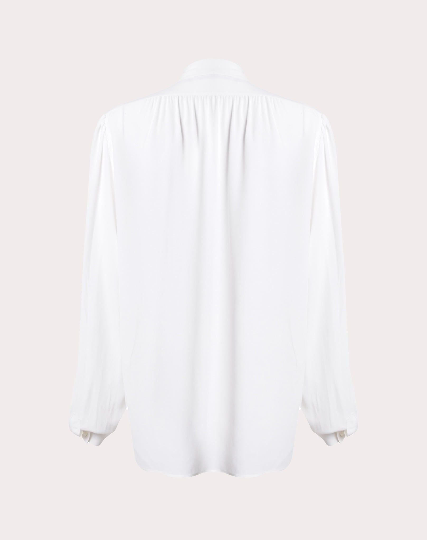 Áo lụa nữ dài tay cổ tam giác có đai màu trắng