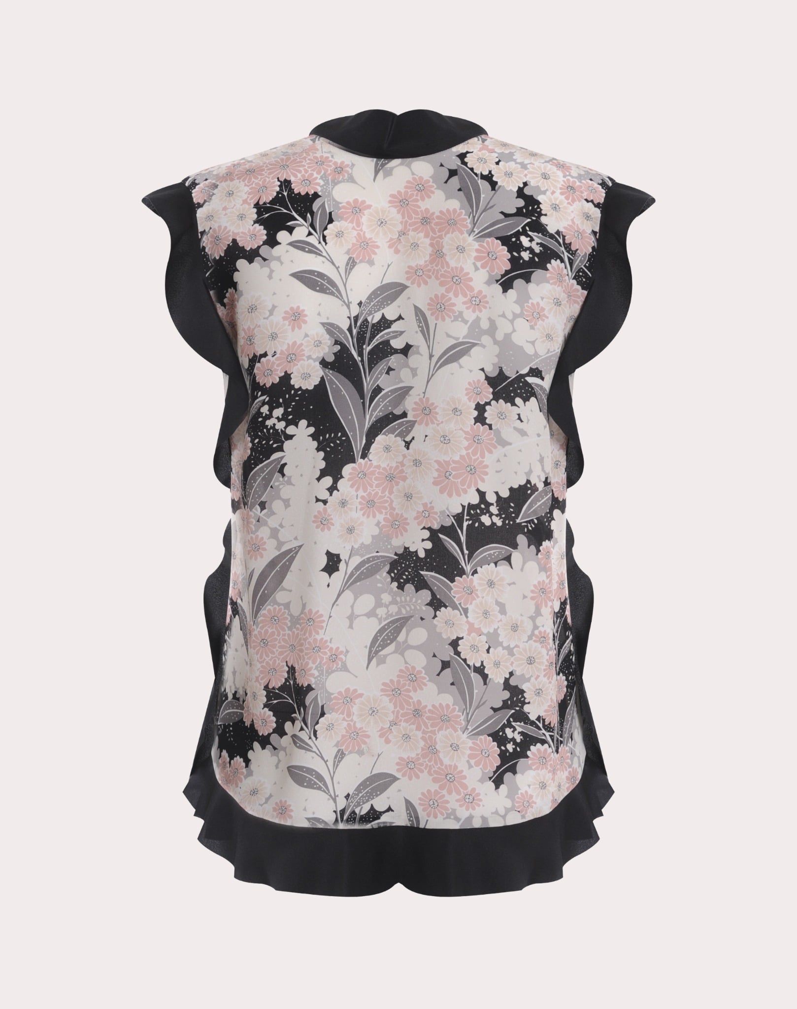 áo nữ sát nách nền màu đen toàn thân in hoa màu be và hồng