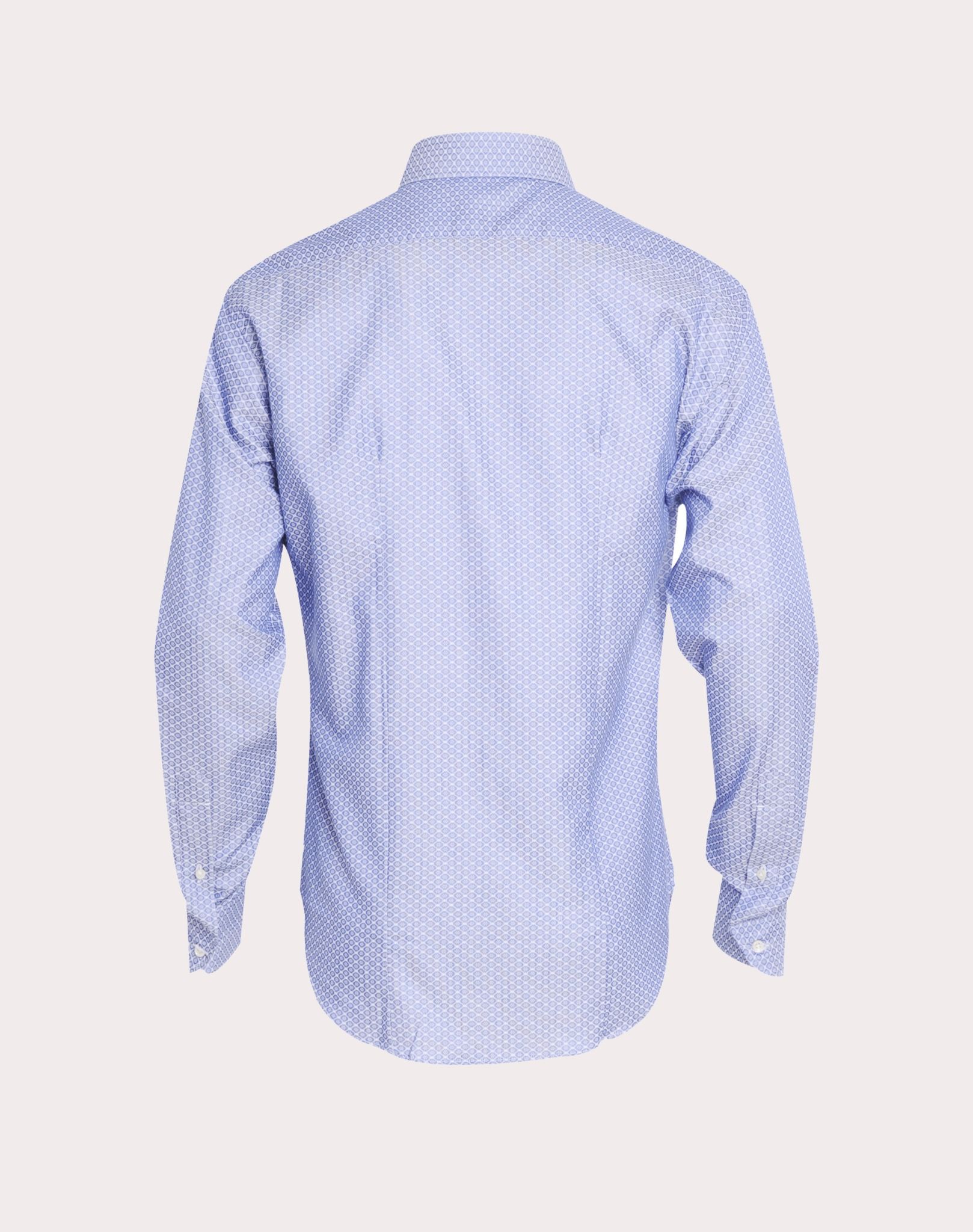 Áo sơ mi nam dài tay cổ bẻ cài khuy chất vải dầy nền màu trắng toàn thân in họa tiết hình thoi