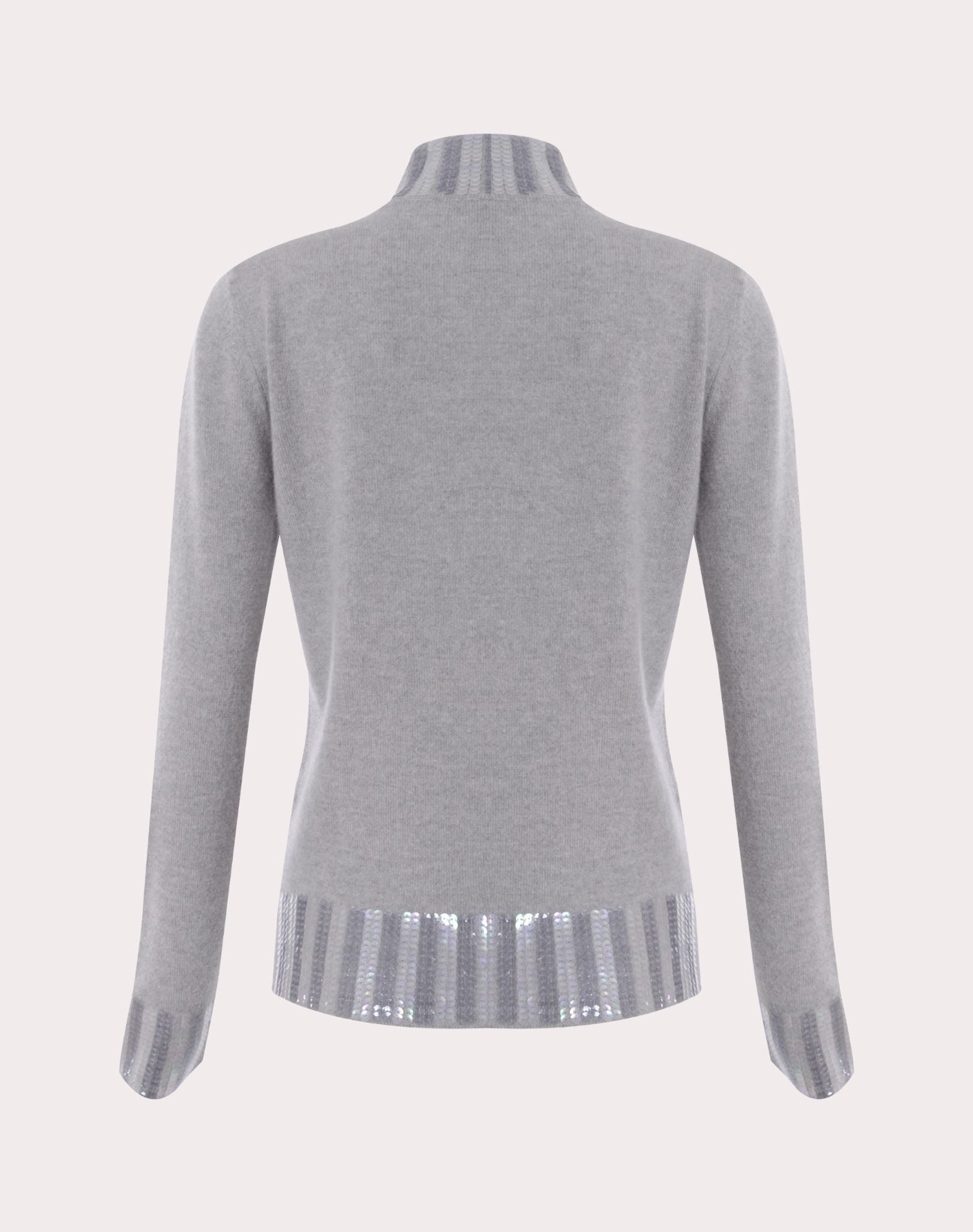 áo len nữ màu ghi dài tay cổ gấu tay và gấu áo gắn cườm 7 màu