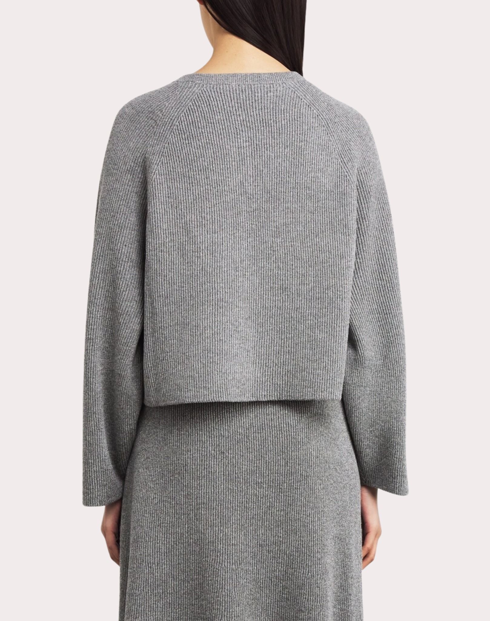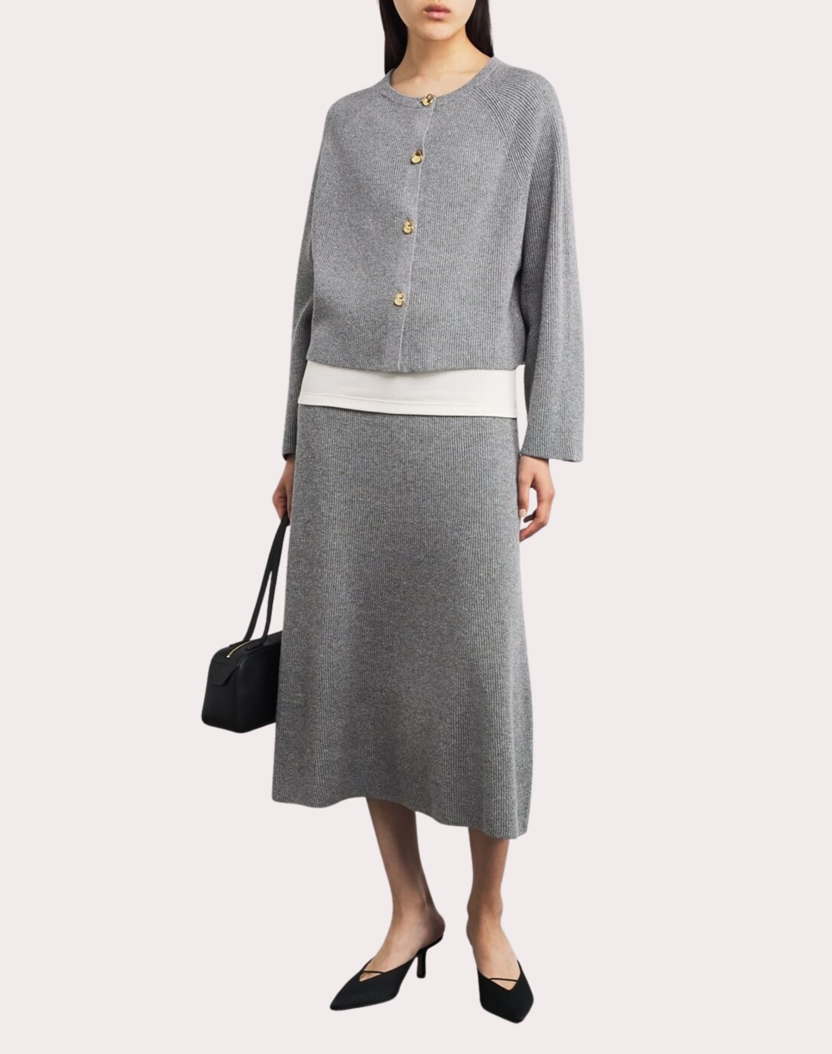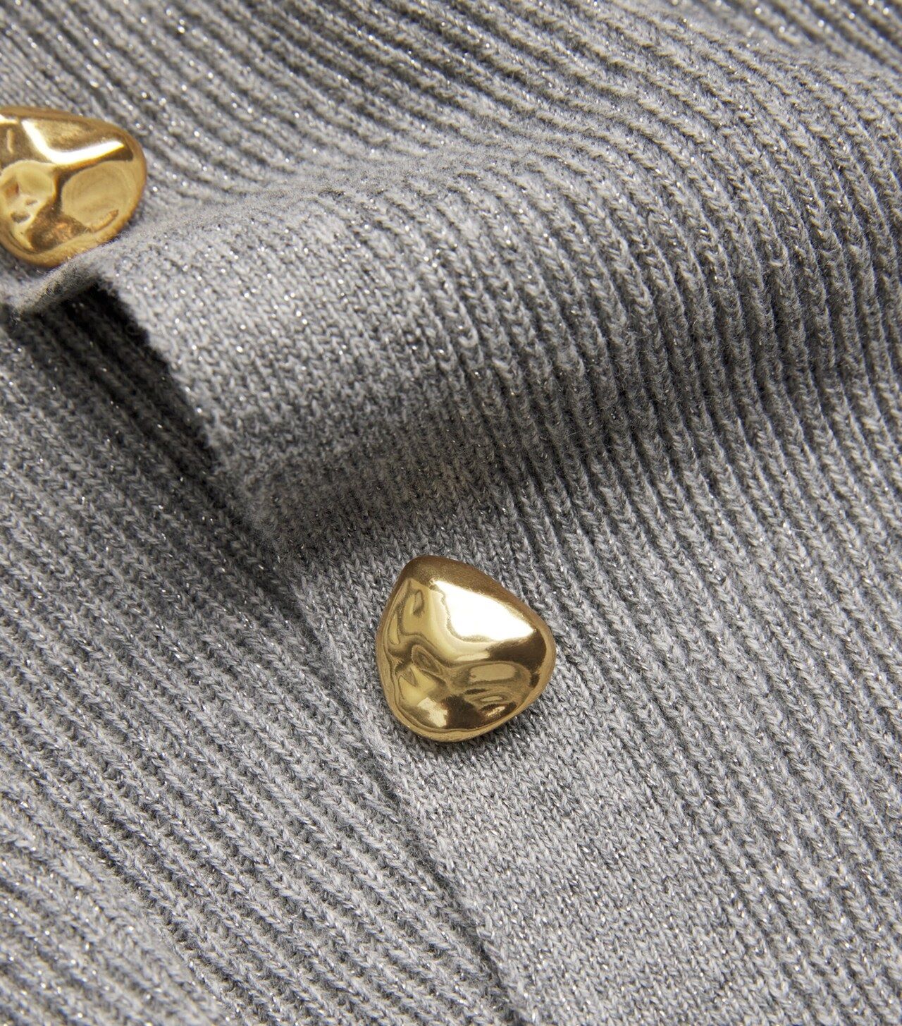 Áo sợi nữ dài tay màu ghi, cài 4 khuy màu vàng