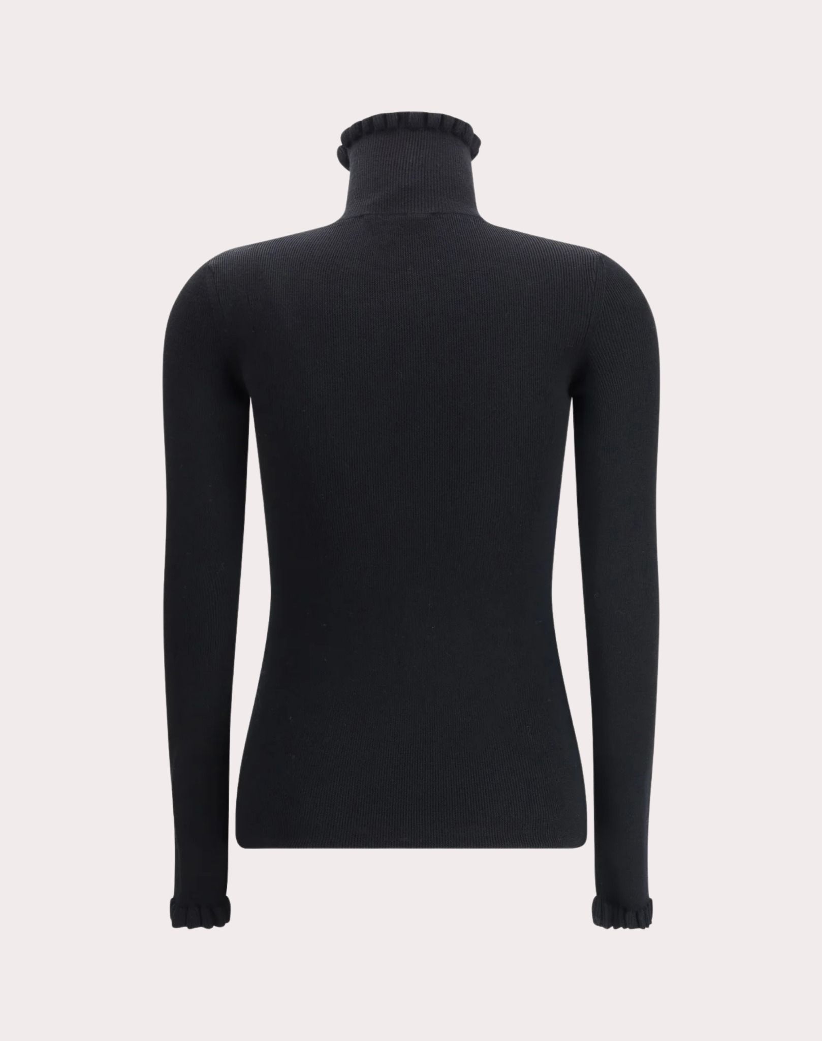 ÁO LEN CỔ LỌ DÀI TAY MẦU ĐEN , CỔ + GẤU TAY PHỐI BÈO CÙNG MẦU , NGỰC THÊU CHỮ VL MẦU ĐEN