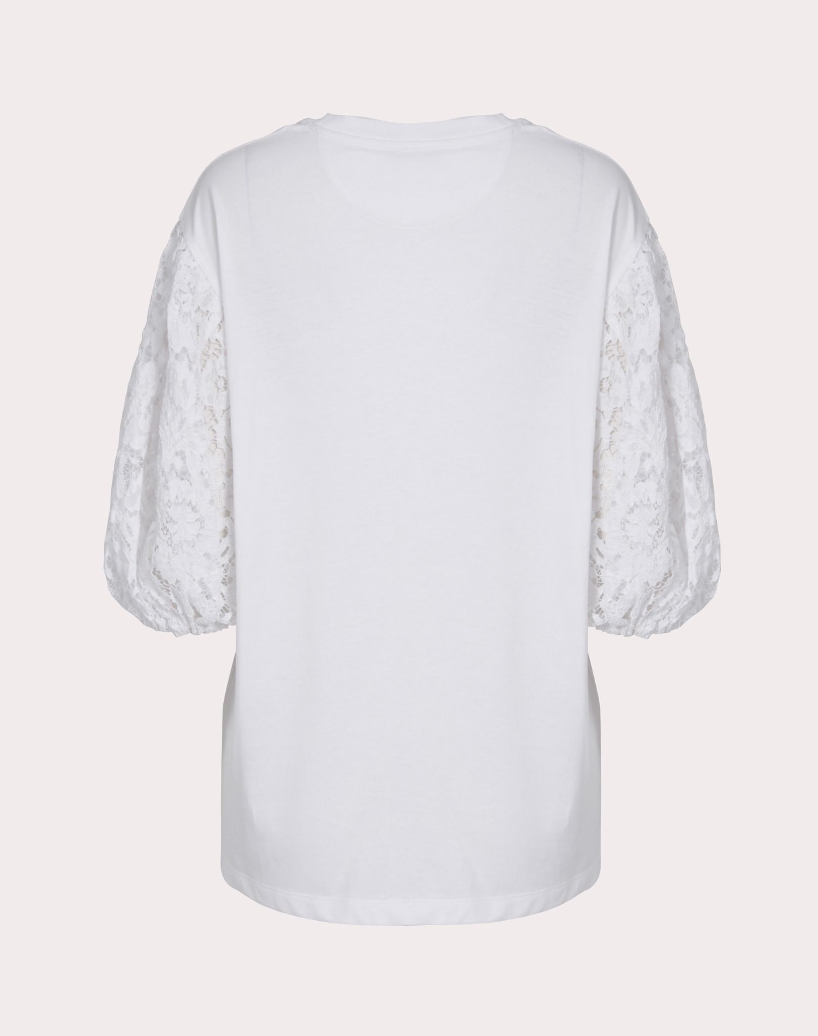 Áo phông nữ tay lỡ màu trắng, tay pha ren màu trắng