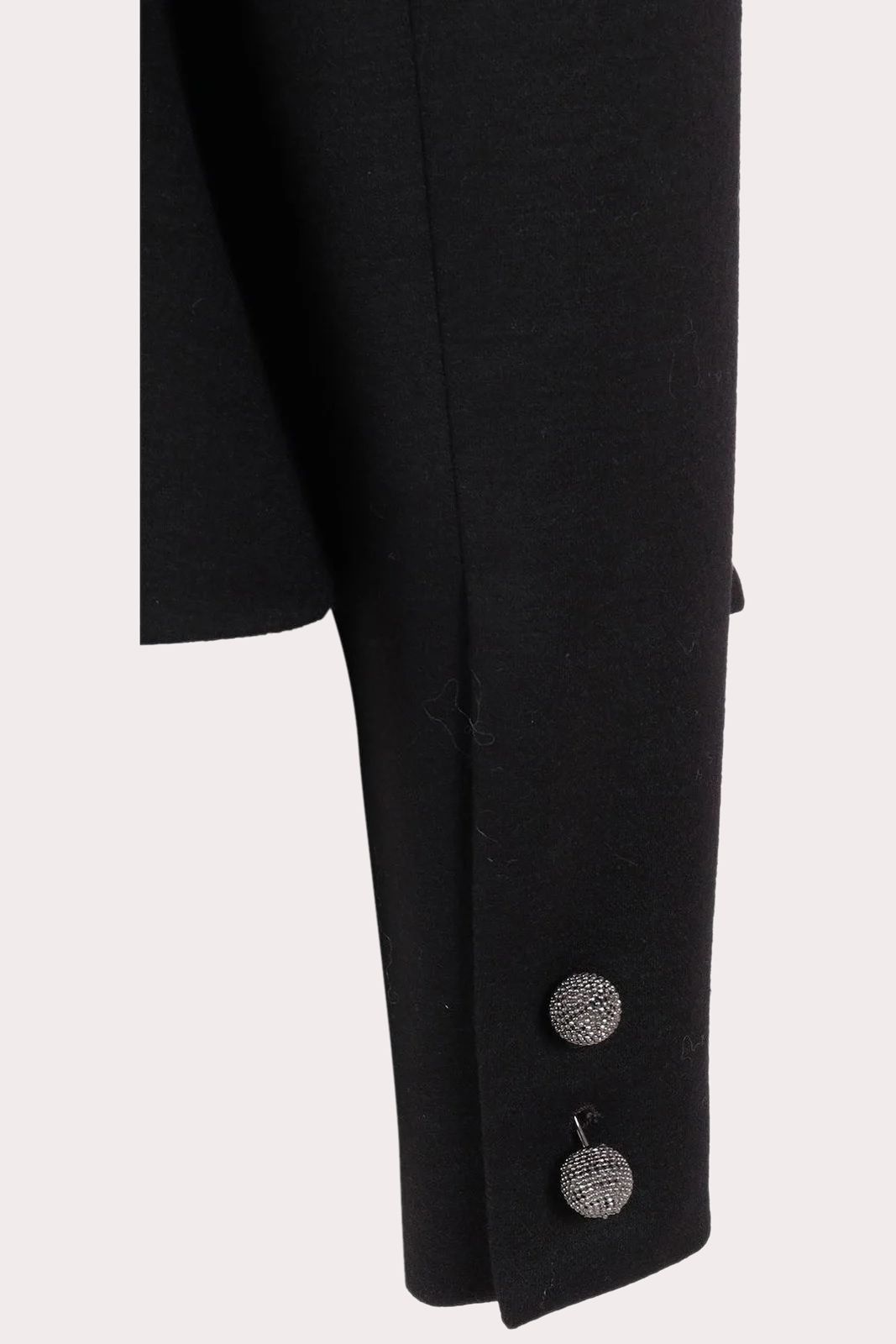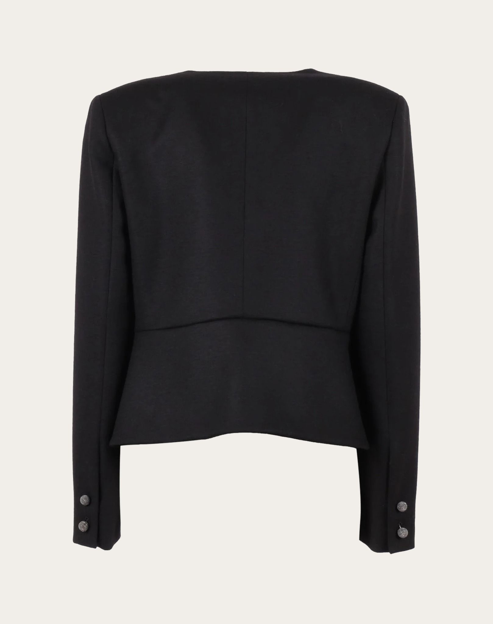 Áo vest nữ màu đen cổ V sâu, cổ tay gắn khuy tròn bằng kim loại