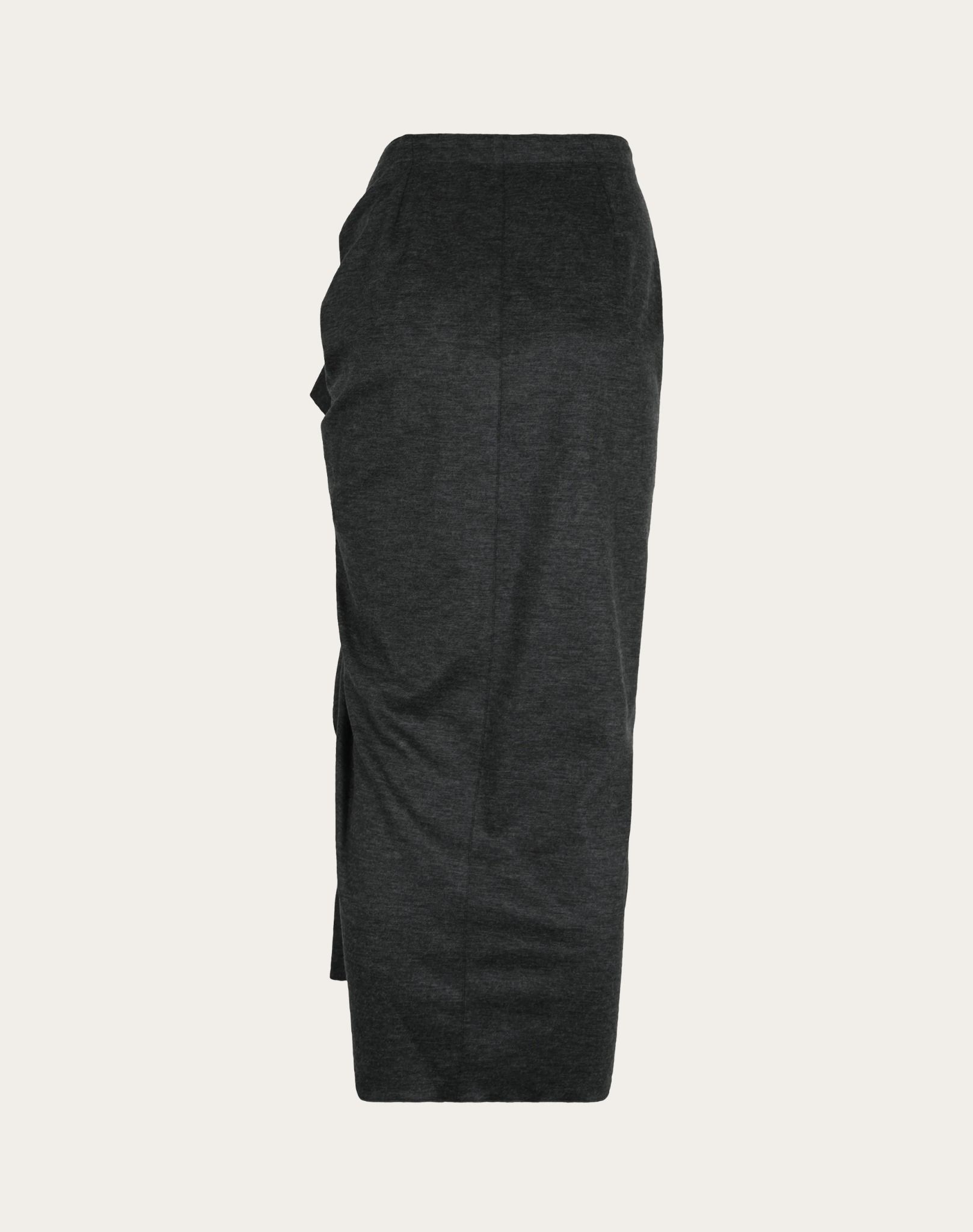 Chân váy màu ghi đen kéo khóa cạnh, thân trái may rúm tạo bèo