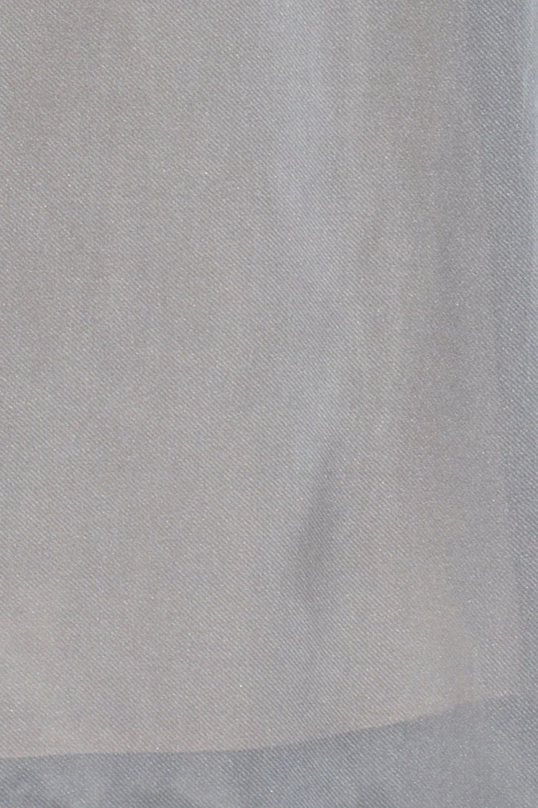 Chân váy dáng dài chất vải bóng cứng màu ghi, kéo khóa cạnh, lót trong màu hồng