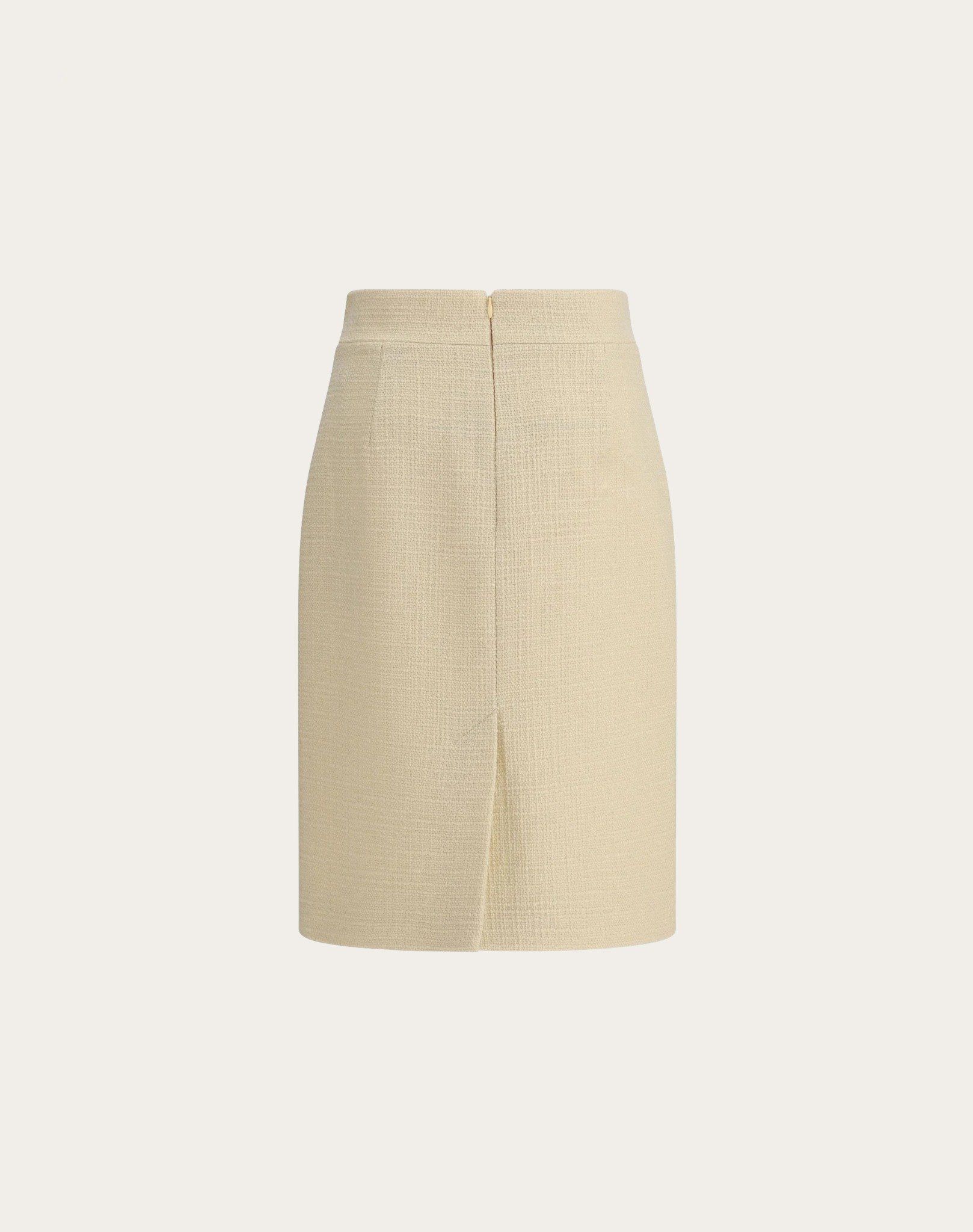 Chân váy màu trắng ngà chất vải thô sần, kéo khóa cạnh