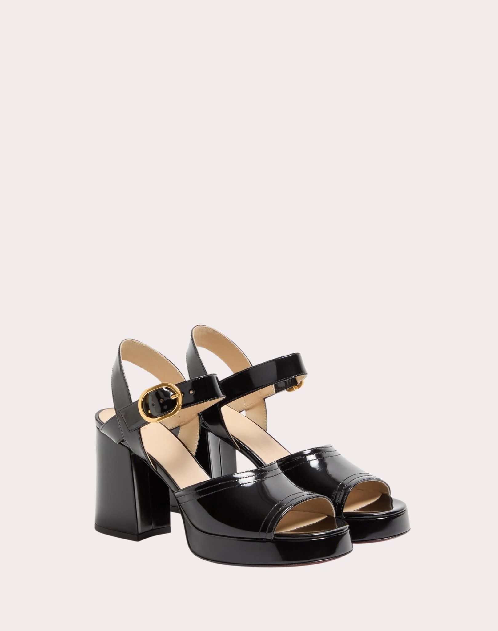 Giầy nữ cao gót da màu đen hở mũi, gót to cao 9cm