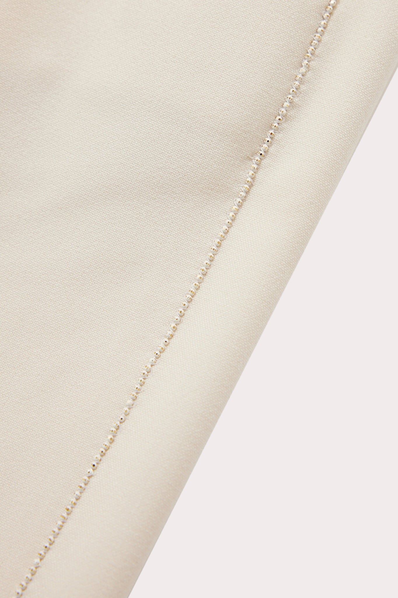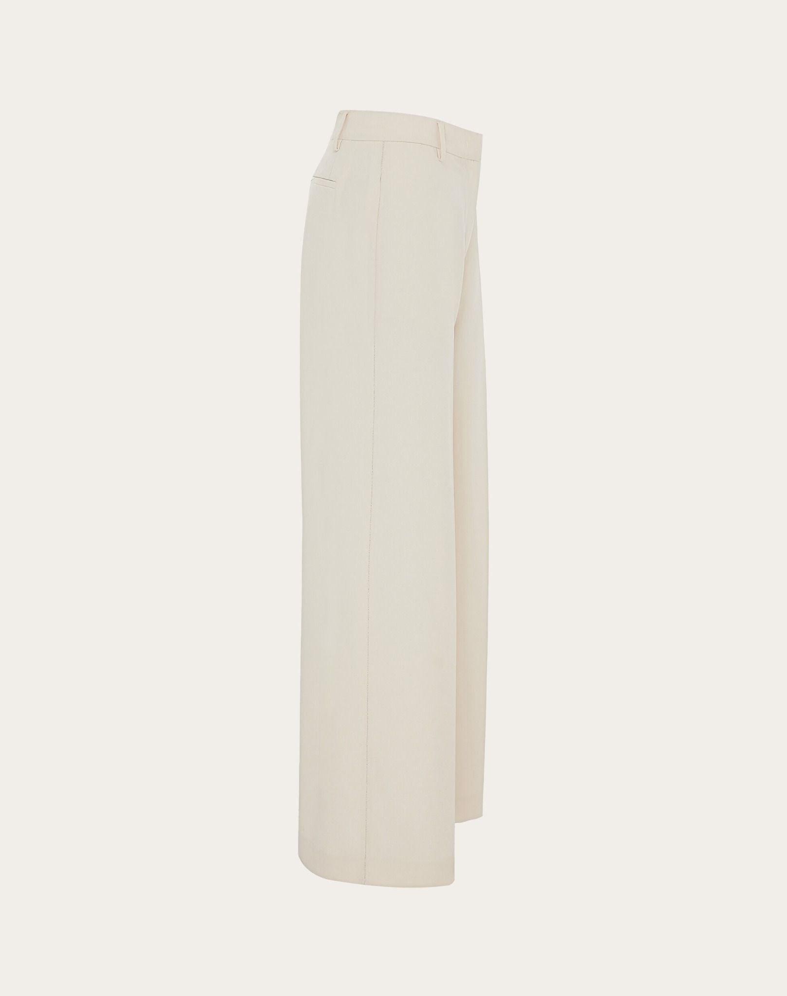 Quần tây nữ dáng côn màu trắng ngà, sườn có 2 túi chéo sau có 2 túi bổ