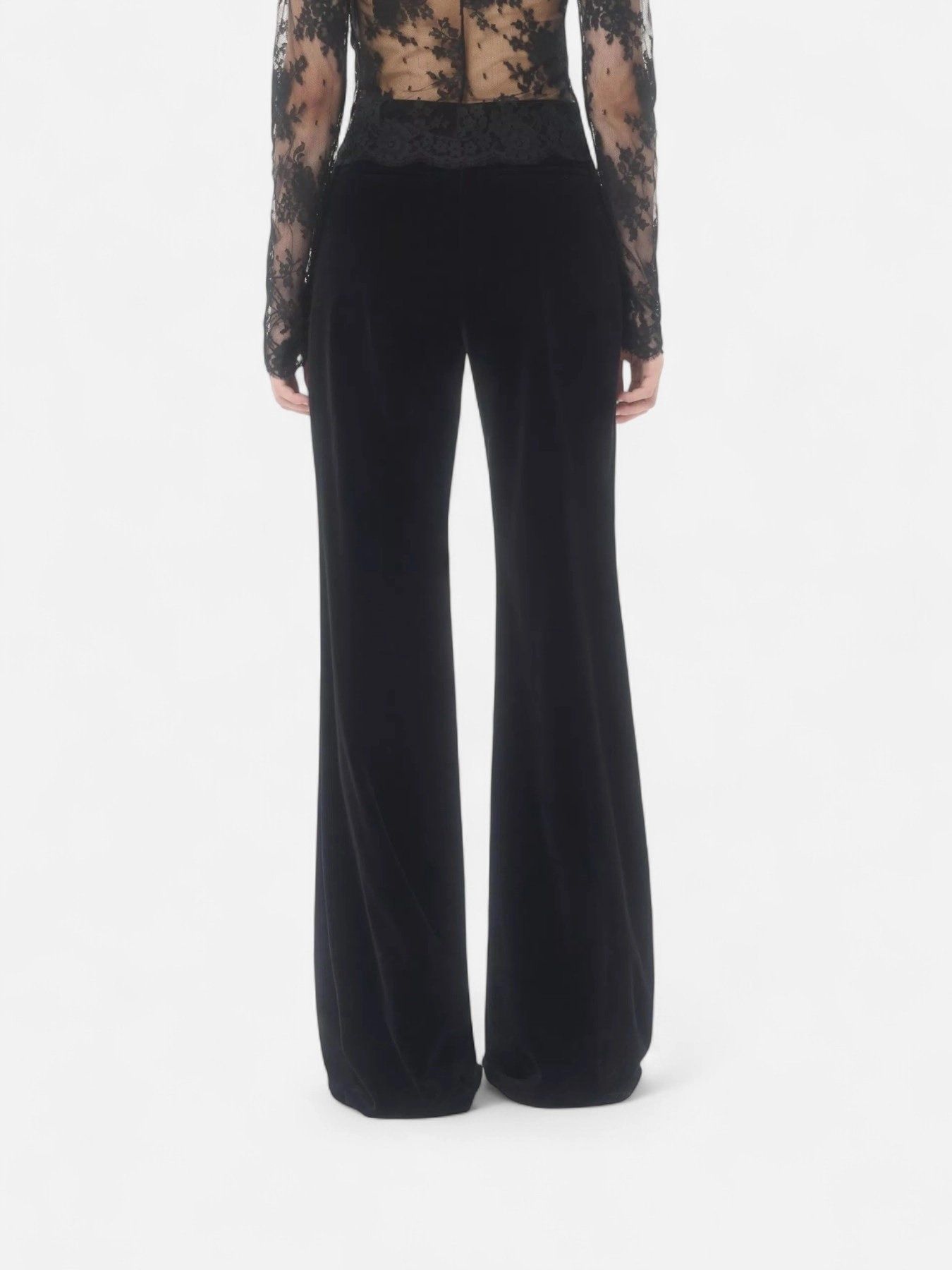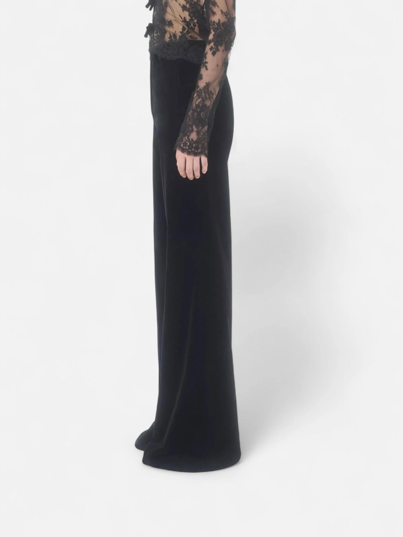 Quần tây nữ chất vải nhung màu đen dáng đứng trước có 2 túi chéo