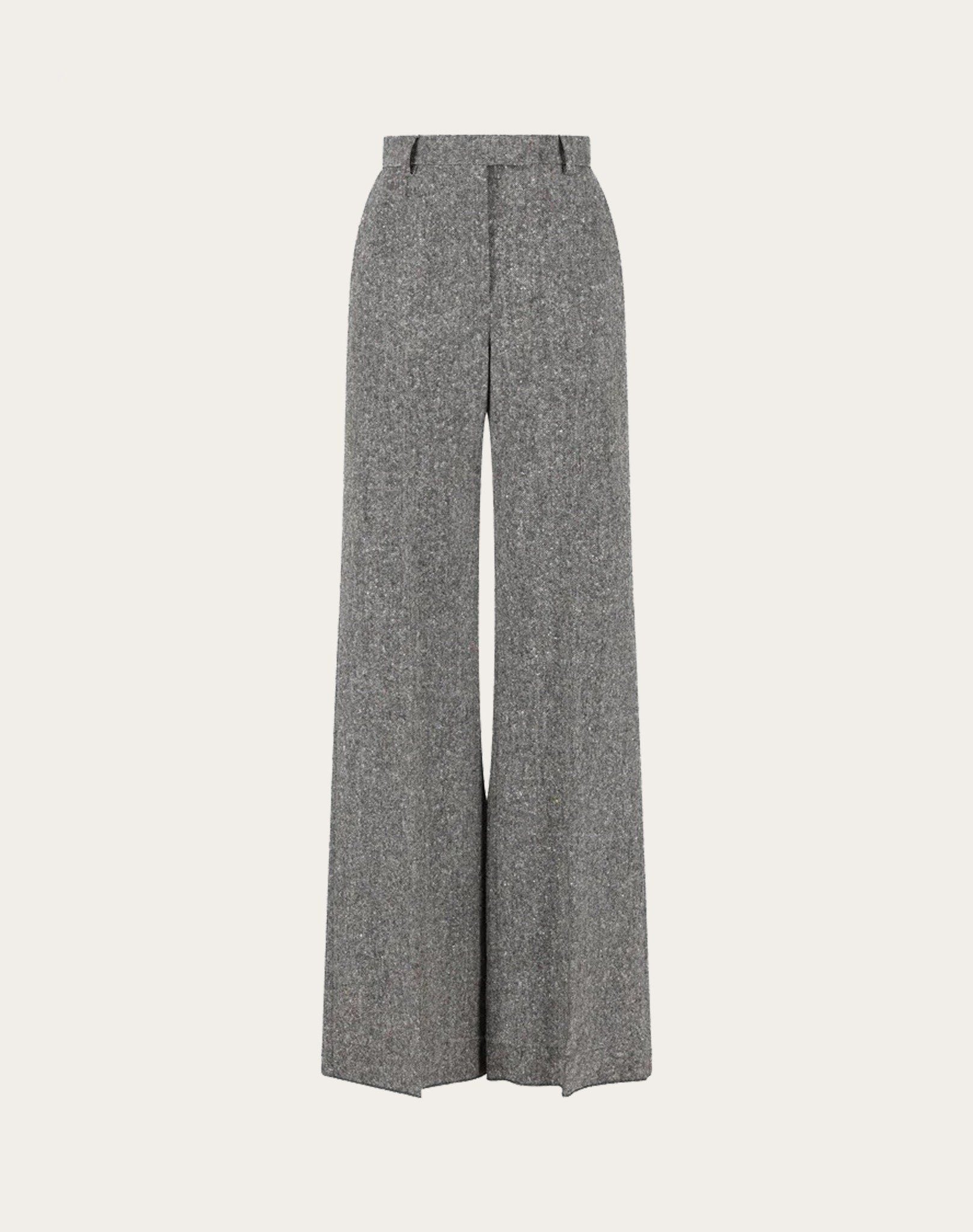 Quần tây nữ chất dạ mỏng màu ghi đen pha chấm nhiều màu, trước có 2 túi chéo