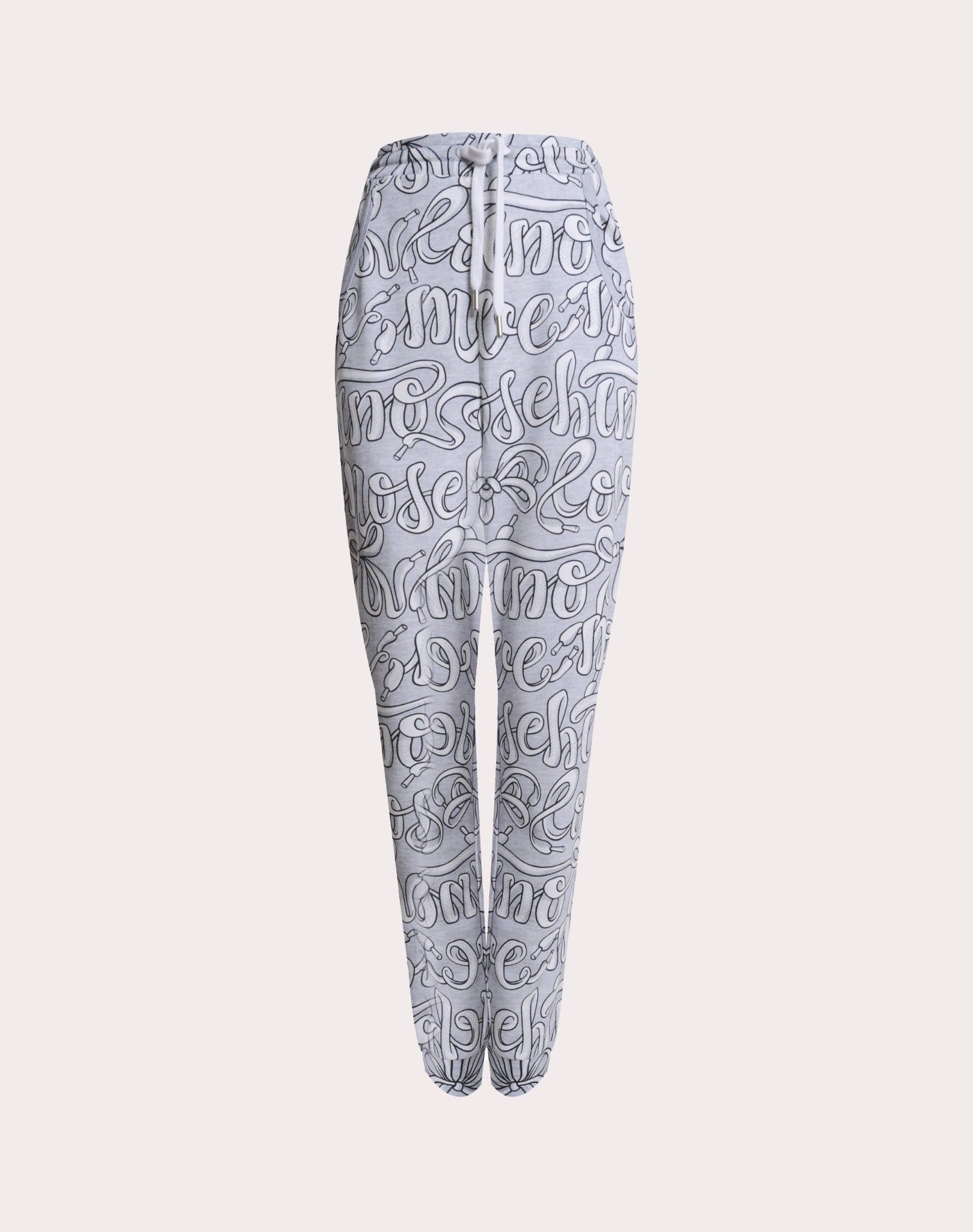 Quần nỉ nữ họa tiết dây buộc dầy màu trắng
