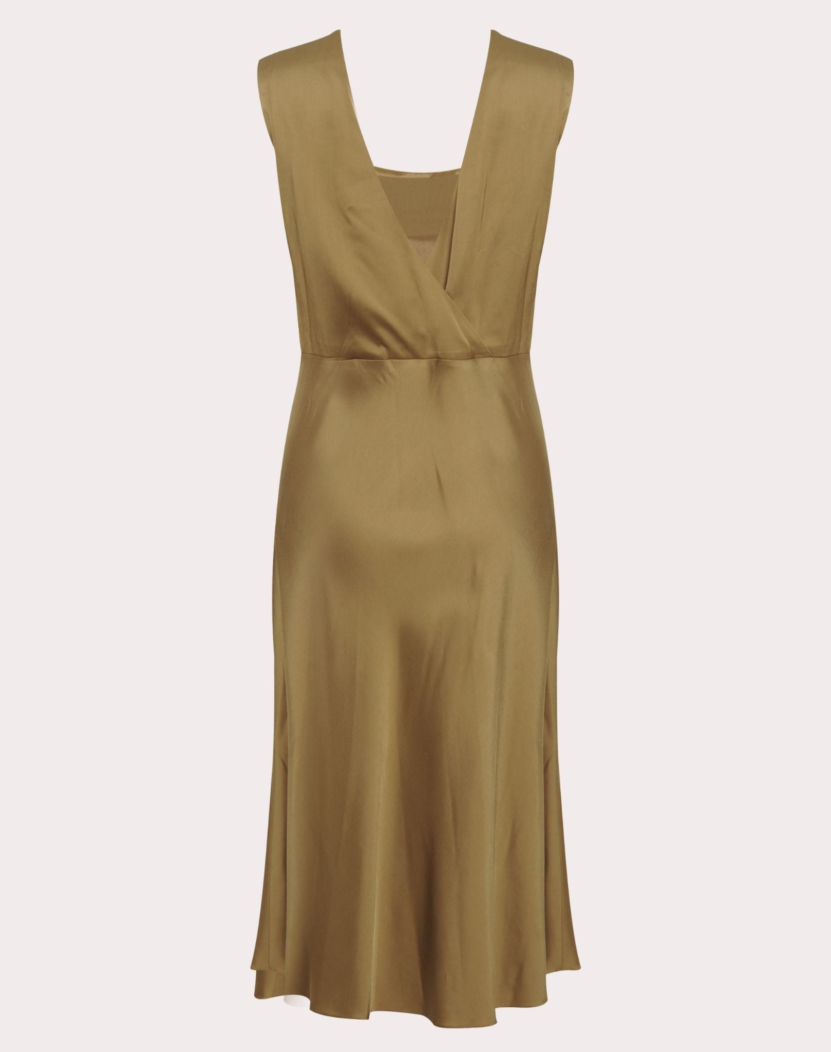 Váy sát nách màu nâu xung quanh cổ may ghép nơ