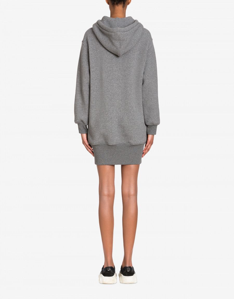 Váy nỉ dày màu ghi có mũ dài tay thêu chữ màu nâu