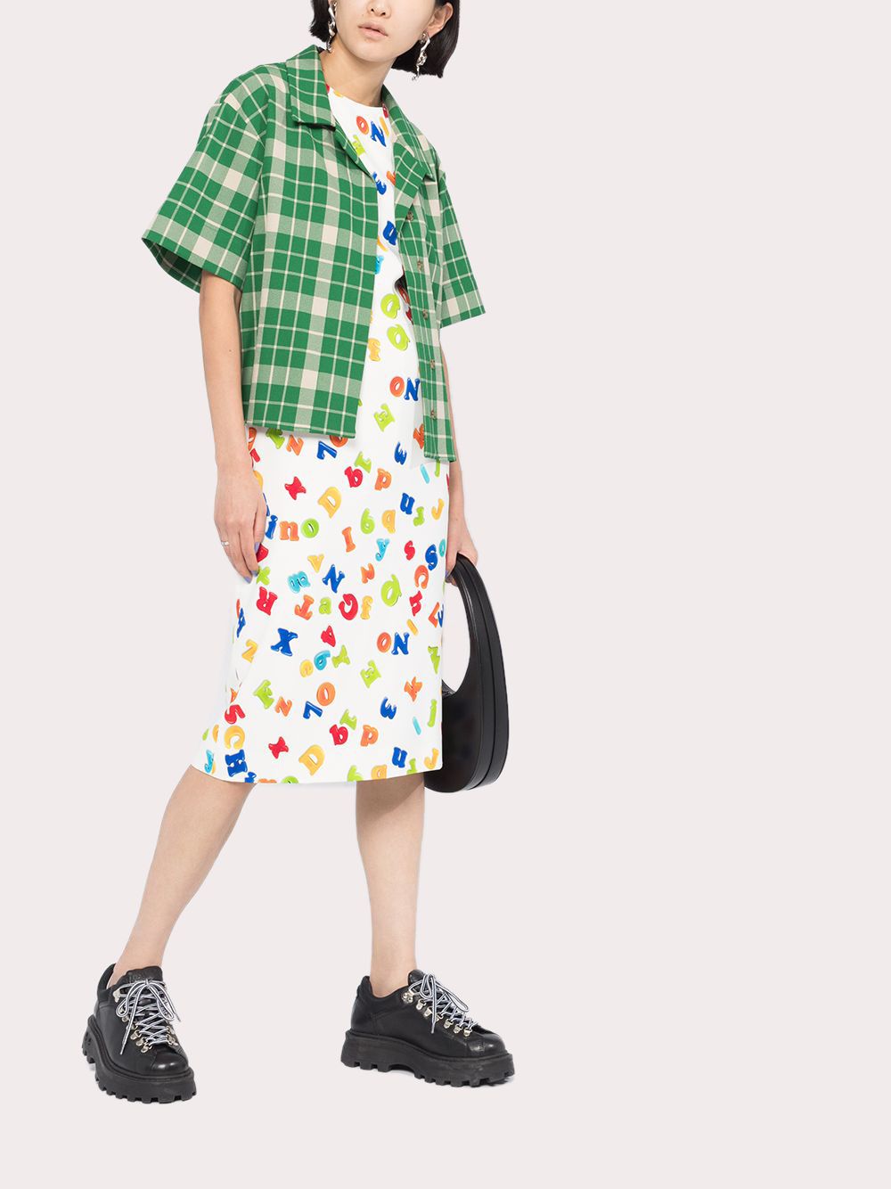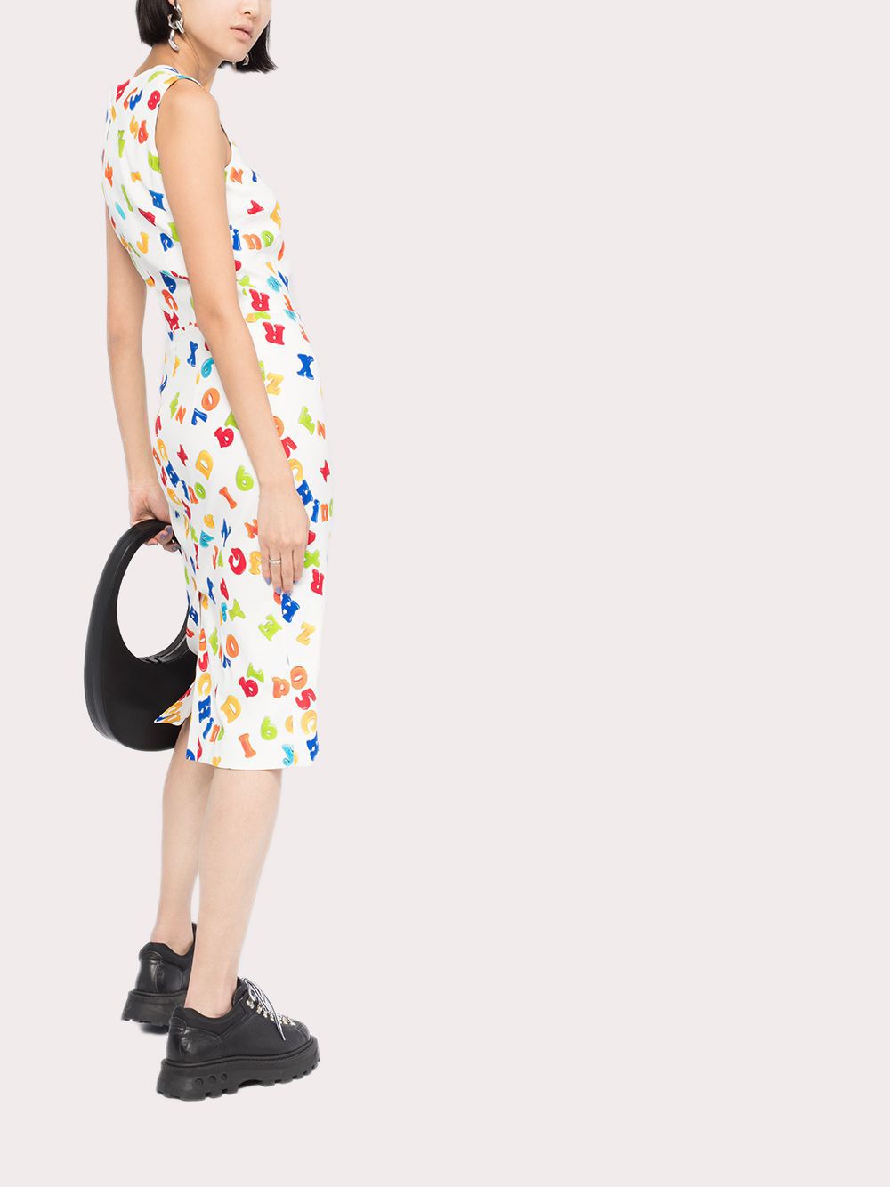 Váy liền sát nách màu trắng toàn thân họa tiết chữ cái in nổi 3D nhiều màu