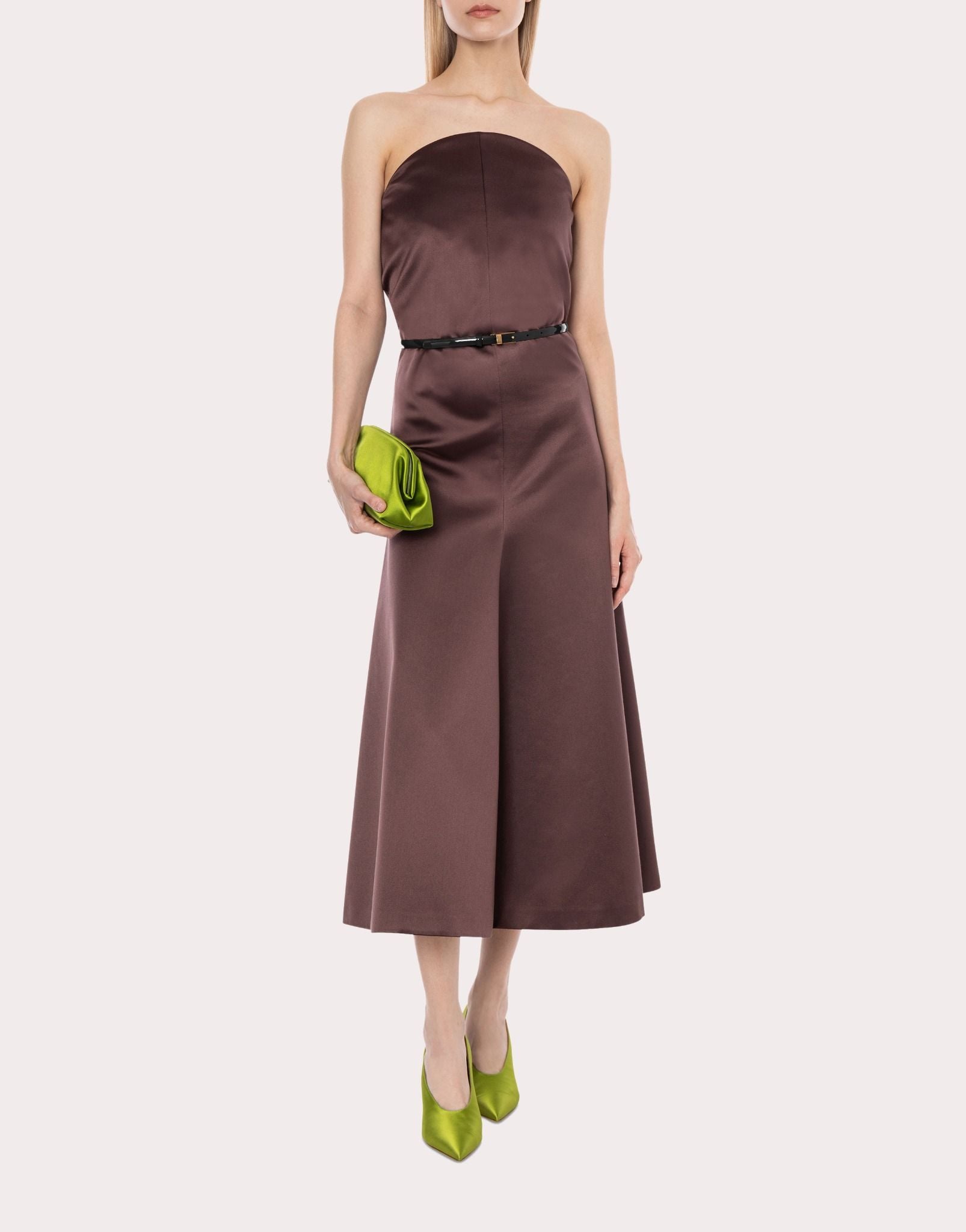 Váy liền quây cúp ngực màu bã trầu,kéo khóa cạnh , dáng xòe