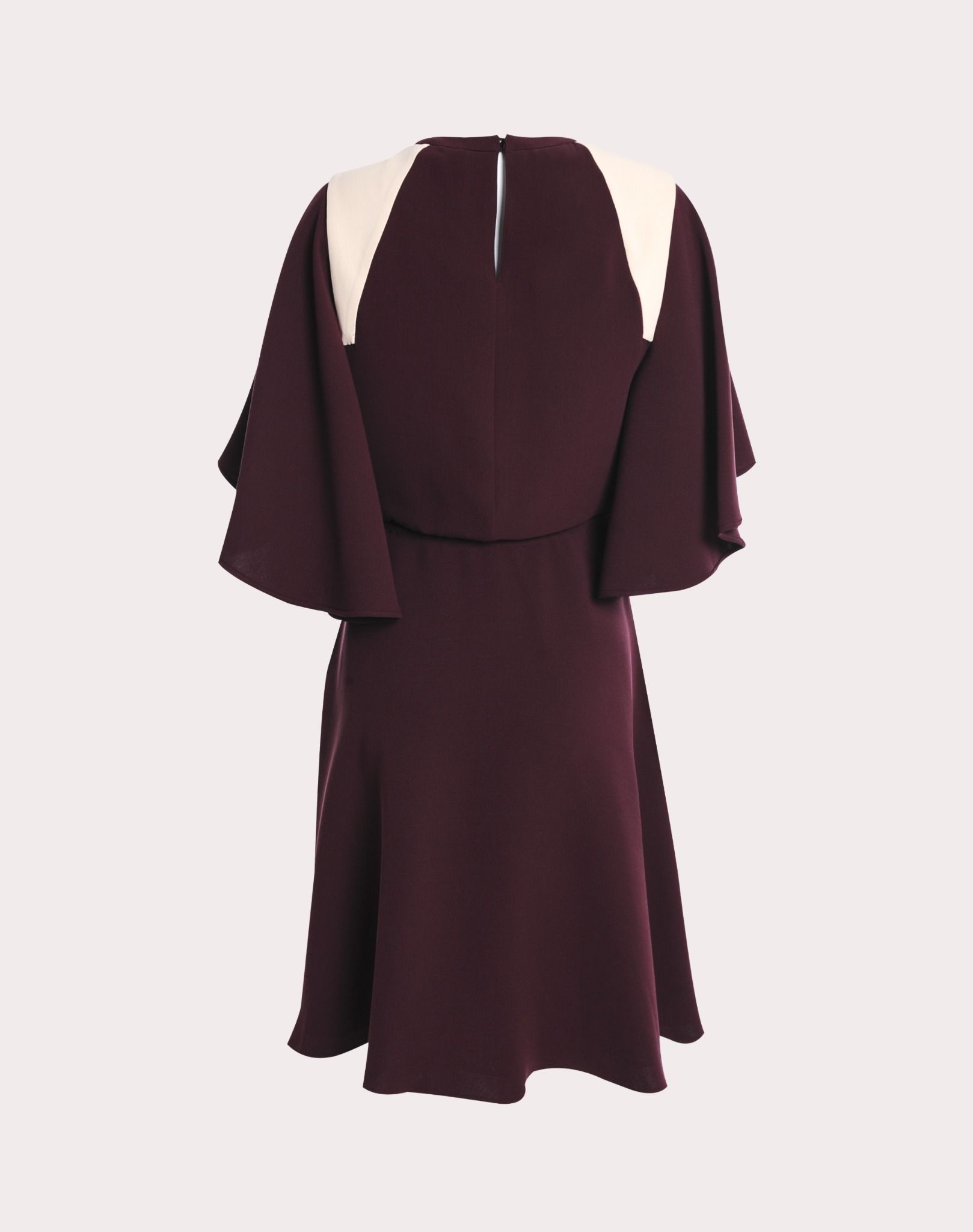 Váy liền màu mận, tay xòe rộng, 2 bên thân pha vải màu be